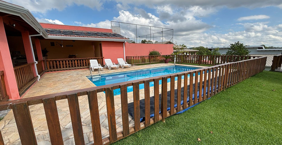 Piscina 4x8 com profundidade variável, aquecida e totalmente cercada;